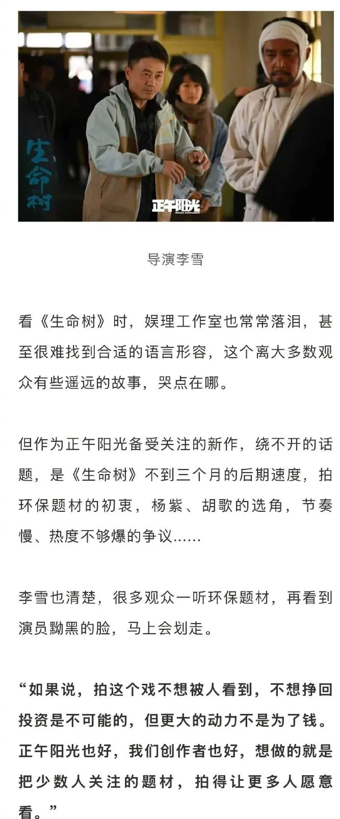 让我意外的是,就这样一个边缘化的配角演员,却经常在社交平台宣传《生命树》,一扒拉才发现,她身份果然不简单,竟然是这部剧导演李雪的妻子!相当于李雪带妻子进组,客串个小角色,过把戏瘾。