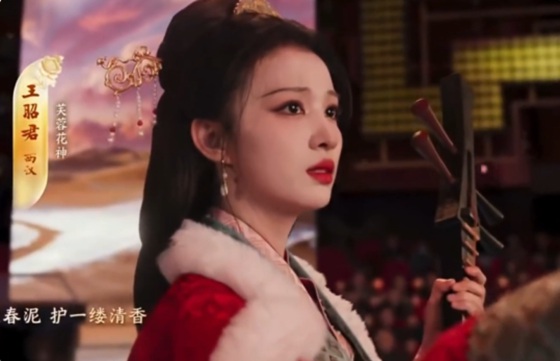 晚会的浪漫与惊艳,则被王楚然牢牢定格。在节目《贺花神》中,她饰演的王昭君一袭红衣怀抱琵琶,伫立在素白雪景中,形成“万里冰封一点红”的震撼视觉冲击。十几秒的镜头里,她无需一句台词,仅凭抬眸时的疏离破碎、回眸时的坚定悲壮,就演尽了王昭君的一生,被网友封为“人生镜头”。