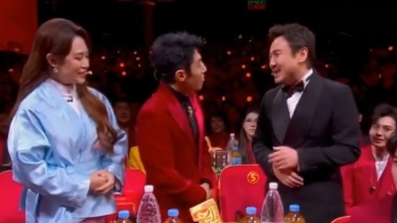 话音刚落,沈腾瞬间脸红到耳根,那副手足无措的模样被镜头完整捕捉,瞬间成为名场面。更有趣的是候场区的“憋笑现场”:白鹿背靠墙捂着嘴,肩膀抖得像秋风里的树叶;宋威龙干脆蹲下身假装系鞋带,耳根通红却藏不住上扬的嘴角,活脱脱一副上课偷乐怕被老师抓包的模样。